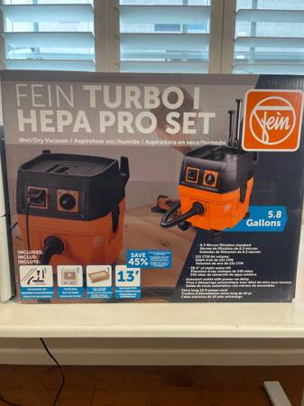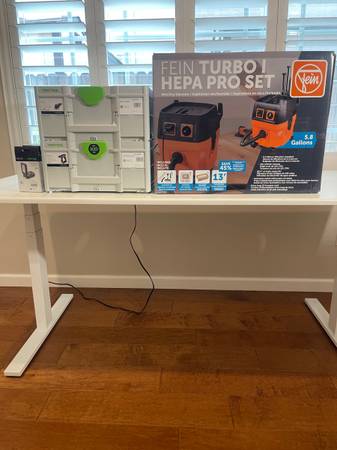 I’m selling all new FESTOOL tools and a FEIN TURBO PRO SET vacuum with less than ten minutes of runtime with no wear marks or scratches. I used the vacuum to lightly sand a small bathroom vanity but did not use the FESTOOL orbital sander or drill driver that I was going to use to renovate some kitchen cabinets for a rental property and replaced them with new cabinets instead. I have no use for the high end tools made for professionals. I’m asking $1,160 for all the equipment that I paid $1645.