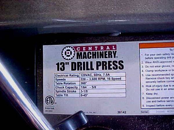 Central Machinery - Model 38142 13" Benchtop 16 Speed Drill Press NEW ITS BIG, ITS HEAVY BRING A FRIEND!