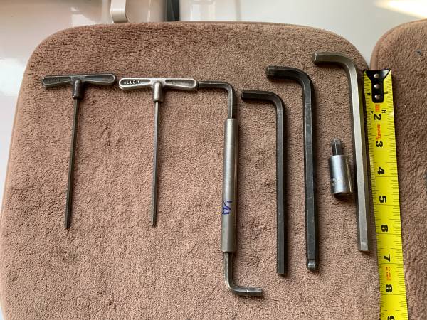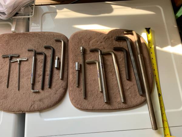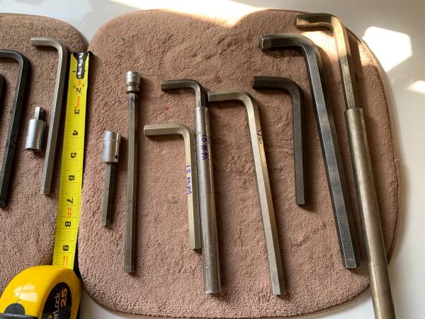 Various sizes of hex and Allen wrenches. 4mm, 1/4, 5/16, 3/8, 10mm, 12mm, 1/2, 5/8 call or text $1-$5