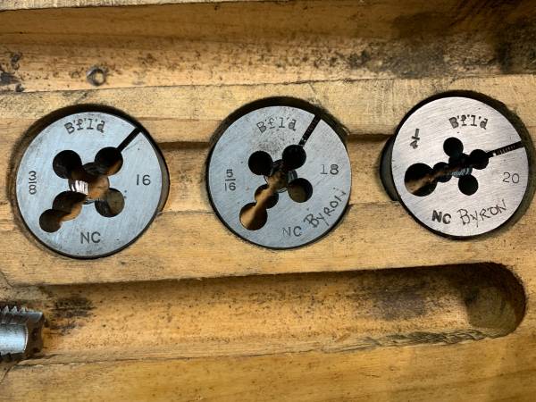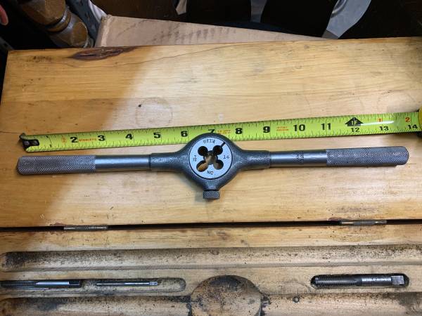Butterfield 13" die wrench handle with 7 dies in wooden box incomplete set Made in the U.S.A. name inscribed $40 call or text
