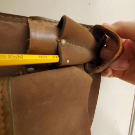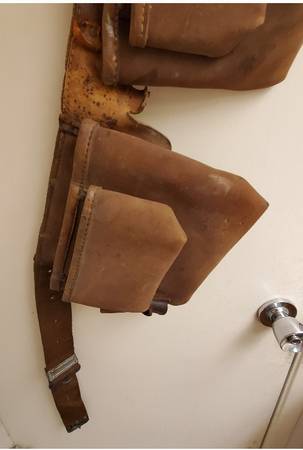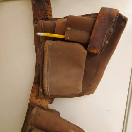 2 Tool belts 40+ inch long Two 10 Pocket Leather Contractor Aprons - $25 Long beach city near El dorado park Decent worn condition "Broken in" See photos