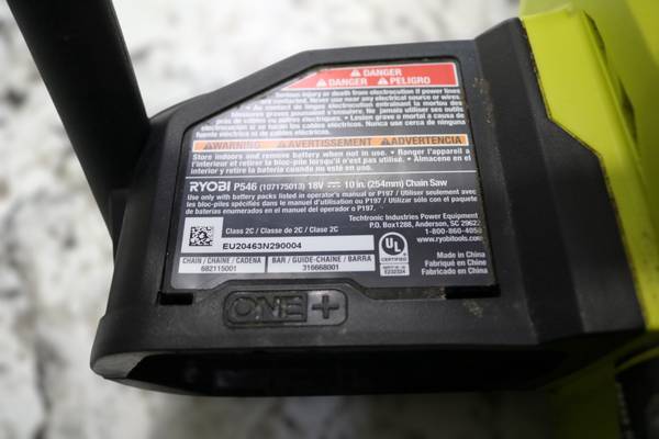 Up for sale. We have a secondhand Ryobi P546 Chainsaw with Battery and Charger. The item has been tested and works as intended. The item is in good cosmetic and working condition. The chainsaw comes with a single battery and a charger; no other items are included. Please view all of the pictures that are provided so that you can have a proper understanding of the item you are purchasing. A layaway plan is available with a 30% deposit, or we offer financing with Affirm for up to 6 months, depending on the item you are purchasing. You can pick up the item anytime during regular business hours; shipping is not available for this tool.