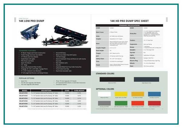 7 x 14 Low Pro Dump Trailer 14K, 48” Sides (RDL48714TA5) $11,450