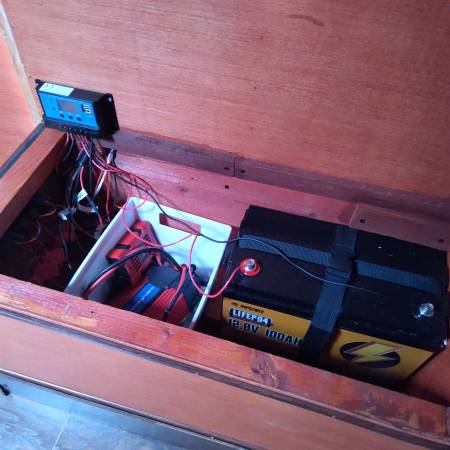 1500W 110v inverter and brand new 100Ah LiFePO4 battery.