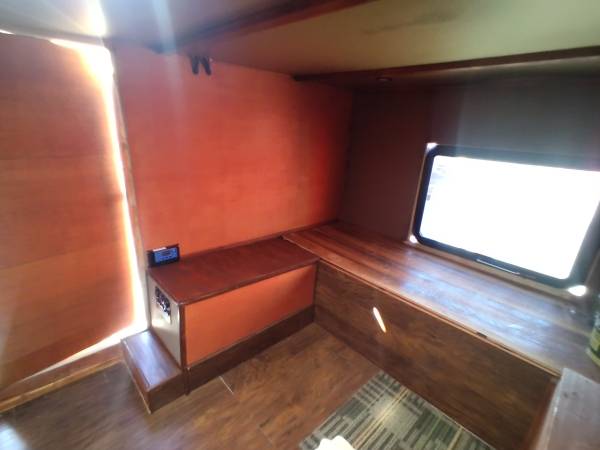 This unique, nearly finished project is perfect for two people looking to hit the road with a cozy, eco-friendly setup. Built with light weight durability in mind, it’s ready to roll as-is or can be completed to your taste!