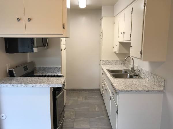18651 Clark Street, Tarzana, CA. Clark Plaza offers a spacious beautiful two bedroom, 2 bath apartment on the 2nd floor. Entire apartment completely remodeled with stainless steel stove, stainless steel microwave, porcelain tiled floors, Quartz counter tops, new ceiling fans, fresh paint, new A/C unit, newer mini blinds, and newer laminate floors throughout. Clark Plaza is a smaller, quiet complex with a sparkling pool, covered parking, (one parking spot per unit), laundry facility and is well maintained. 1 short block to shopping, Gelson's Center, CVS, Vons, Chase Bank, Wells Fargo Bank, Post Office, Whole Foods & more. Near Encino, Reseda, Woodland Hills. Close access to Orange Line and 101 Fwy. Friendly on-site Managers. Call today to view show contact info