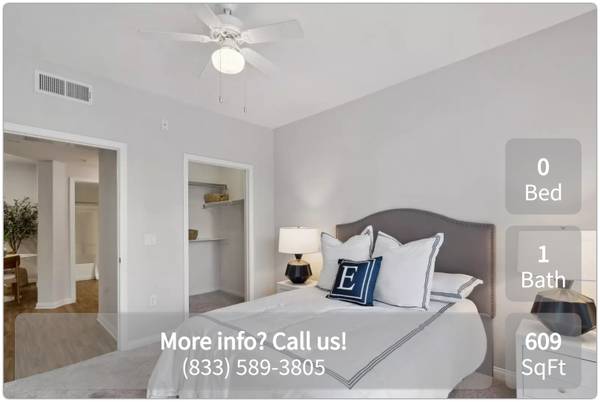 Rental Size: Studio BR - 1 BA - 609 sq ft | Per Month: $2182 - $2395 | Lease Length: 12-Month