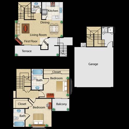 At Colony Townhomes in Santa Clarita, our apartments are a place you will love coming home to. Each of our available apartments has access to a beautiful picnic area with a barbecue and play area, which means you'll always have a place to take your family and friends. We also provide great amenities for residents, including an enclosed dog park, state-of-the-art fitness center, a cool swimming pool, and a relaxing spa for residents to maintain their high-energy lifestyles. Each of our apartments also feature a personal garage for easy parking.
