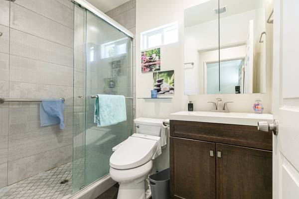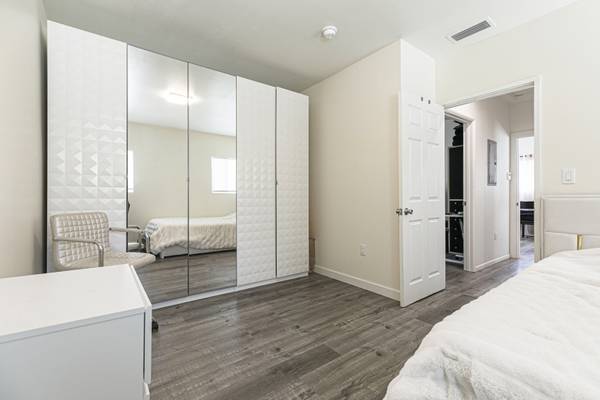 Modern and private back house for rent in Glendale featuring 2 bedrooms and 1 bathroom with approximately 600 sqft of living space. This updated unit offers an open layout with stylish laminate flooring, recessed lighting, and a bright kitchen with white cabinetry, stainless steel appliances, and a marble-style backsplash. The bathroom includes a glass-enclosed shower and modern finishes. Both bedrooms are comfortably sized with good natural light. Enjoy the convenience of a private entrance, in-unit laundry, included internet, and a clean gated patio area. Located in a quiet neighborhood with easy access to nearby shops, dining, and freeways. Street parking only.