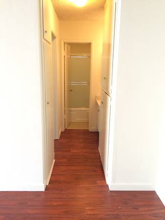 Water, trash and electricity included. Full kitchen, full bathroom. One parking space included with the apartment. Swimming pool and workout area available at the building. Laminate floors, gated parking, heating. Lease terms: 7-9 month lease.