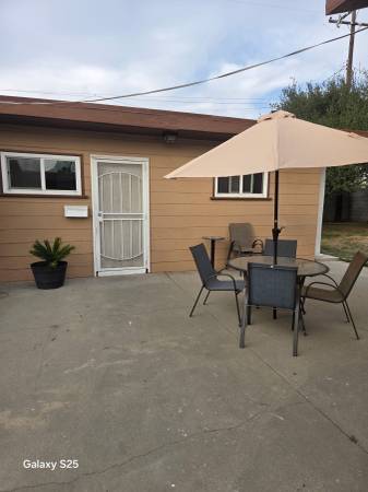 For rent beautiful1 bedroom rear house, not a studio, private and separate entrance, security gates, a/c, heater, stove, new paint, includes utilities, ceiling fan in bedroom, new carpet, new walk in shower, and YFI. With 1 parking space in driveway. Cute smaller detached house in rear, in a residential area. 600 square ft. Owner in front. $1900.00 monthly rent. 1st and last month required. Security deposit negotiable. Single person preferred. NO PETS, Call Bill show contact info