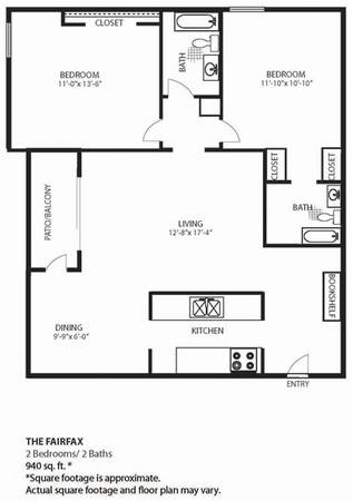 - Premium Two bedroom and Two bathroom apartment (The Fairfax Floorplan). This beautiful apartment is on the 3rd floor. Please call to set your appointment and discuss this apartment in more detail. The apartment will be available for tours very soon.