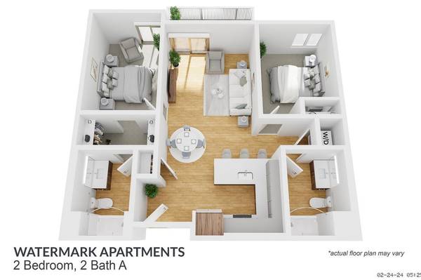 The Watermark Apartments has studio, one, two, and three bedroom apartment homes, along with spacious one and two bedroom townhouses. All homes come with features such as in unit washer and dryer, plank floors, generous closet space, elegant stainless steel appliances, large windows with exceptional natural light, and so much more!