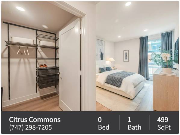 About the community: Pursuing LEED Gold certification, Citrus Commons is a sustainable community for residents and the community of Sherman Oaks alike. Each aspect of the community is thoughtfully designed with sustainable practices in mind so you will love where you live. Come explore some of the shops, grab dinner with friends, or pick up some necessities at the specialty grocer. You won't have to worry about parking as there will be plenty for residents, shoppers, office associates, and visitors.
