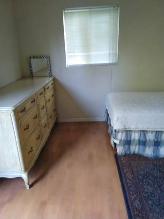 The Studio has furniture, wood floor looking to flowers and fruits.