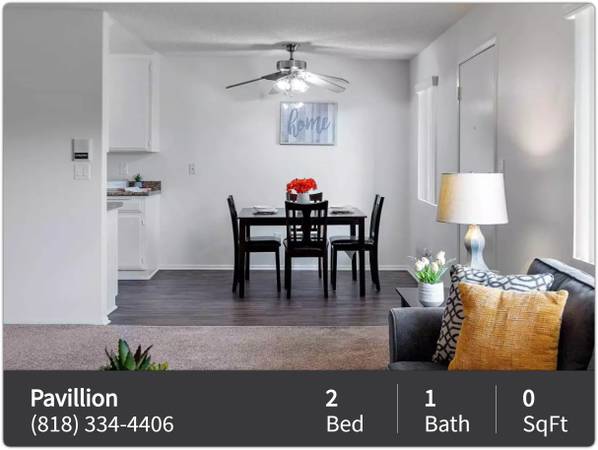 + + + + + + + + + + + + + + + + + + + + + + + + + + + + + + + + + + + + + + + + + + + + + + + **4 WEEKS FREE FOR 1 YEAR AND $250 OFF MOVE IN COSTS IF YOU COME IN FOR A TOUR AND APPLY WITHIN 24 HOURS OF THE TOUR!**About the community: What do you look for in a perfect neighborhood? Though the Pavillion is quiet and set back from the action, the nearby Ventura Boulevard district features shops, bistros, and sidewalk cafes. Outdoor parks and public gardens are plentiful in the area. Larger shopping malls offer a different sort of adventure, and enough entertainment opportunities can be found throughout the neighborhood to keep every taste and budget busy. Your new favorite places are waiting for you. And so is the Pavillion Apartment community!