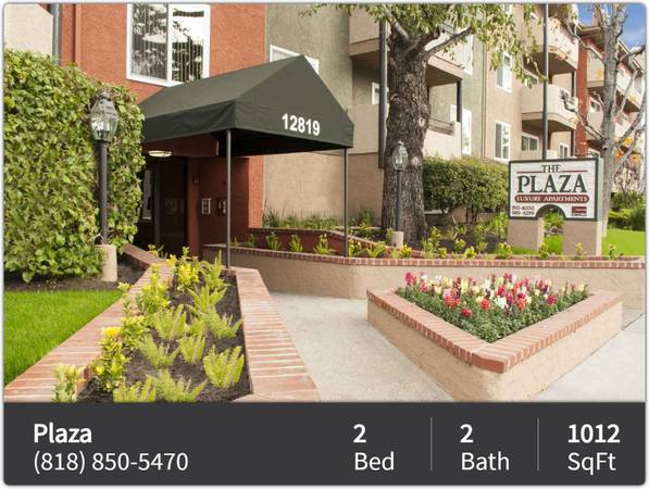 The Plaza Apartments are located on the border of Sherman Oaks and Studio City and offer an unprecedented apartment community consisting of luxury one and two bedroom residences. Enjoy the finest in apartment living here! The penthouse-level residents have views of city lights, mountains, and a cityscape with high rises and church steeples. Studio City Golf Course, Universal City Walk and the Fashion Square Mall are within the neighborhood and are just minutes away. This beautiful Studio City apartment community offers convenient access to the I-405, 101 and 170 freeways.