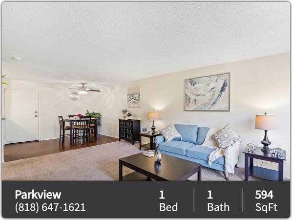 The Parkview Apartments' four different floor plans offer both comfortable living spaces and window vistas overlooking Lake Balboa. Located right across the street from the beautiful Balboa Park, this community features great access to golf courses, tennis courts, jogging/bike paths, boating, and more. A sparkling pool and spa in a lush garden setting are available to residents right on The Parkview grounds. And, just minutes away, restaurants, boutiques, and theaters line the Ventura Boulevard corridor. If you've ever wondered whether being at home could also feel like being on vacation, The Parkview's answer is yes.