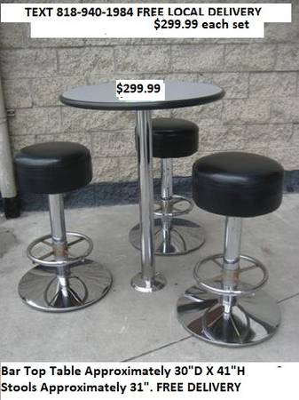 I also have bar tables 10 round with 3 stools (heavy duty) $299.99 each set of 3 stools and 1 table plus 1 rectangular for $50.00 and both need to be bolted down.