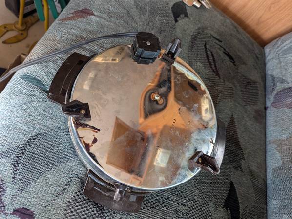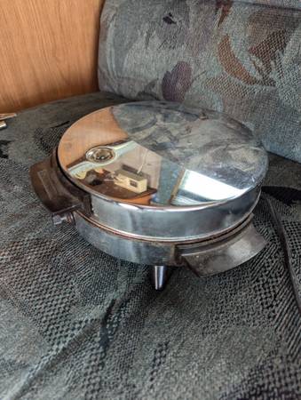Vintage Toastmaster chrome round waffle iron, Model W252A, good condition.