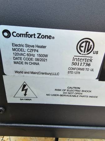Comfort Zone Fireplace Electric Stove Heater 1500W Black - Works Great - $50 (Glendale)