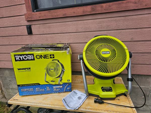 Ryobi ONE+ PCL850B 18V Cordless Hybrid WHISPER SERIES 12" Misting Air Cannon Fan (Tool Only) - Like New