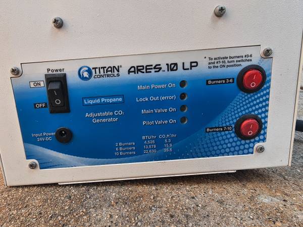 TITAN Controls ARES 10 LP Liquid Propane CO2 Generator - 10 Burners With Hose, Power Adapter
