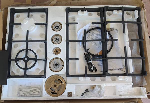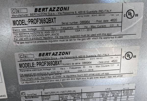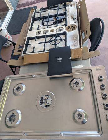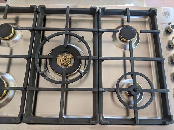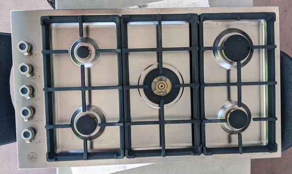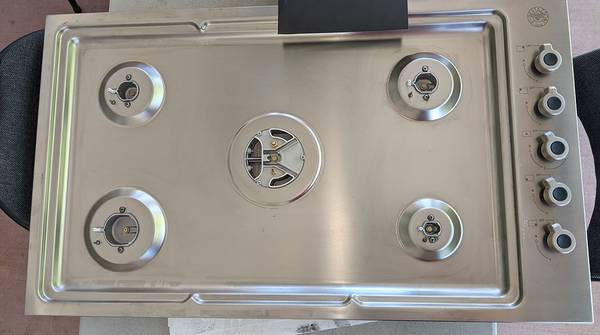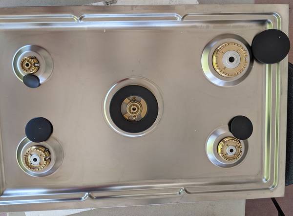 Offered for sale: Bertazzoni PROF365QBXT - 36" Drop-in Gas Cooktop with 5 brass burners. It is brand new as you can clearly see in the photographs, use to be a store display model so it does have few minor imperfections on it, nothing ugly again as itg can be clearly seen in the photographs. Most importantly it is brand new.