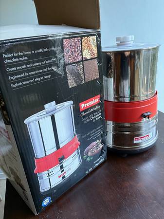 Premier wet grinder for sale - also called a melanger or chocolate grinder. Good condition. I've used it exclusively for making small batch chocolate at home. Put cocoa nibs and sugar in, and it grinds it down to liquid chocolate.