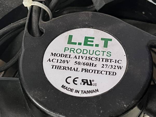 2- 6"inch 120 Volt Axial Fan & Blower 226 CFM Quantity - 2 Model #: A1V15C51TBL-1C Manufacturer: L.E.T. Condition: GOOD If you are interested or would like more information please reach out
