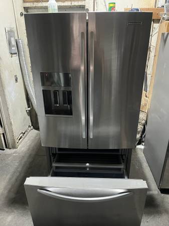 Good Condition KitchenAid Stainless Steel 3 Doors Bottom Freezer.Refrigerador. ((( Ice . and Water It doesn’t work ))). excellent for the garage .only asking ($475.00 obo) call for more info