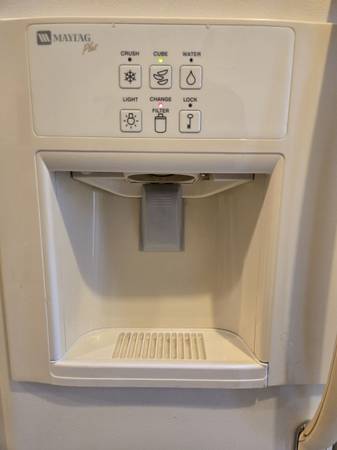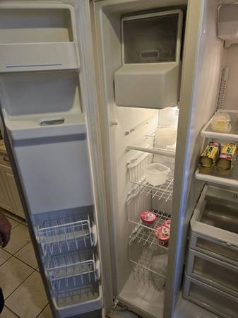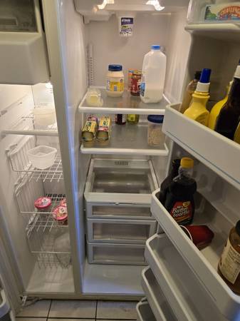 Works great. Professionally refurbished with a new compressor. Height: 71" Width: 36" Depth: 32"