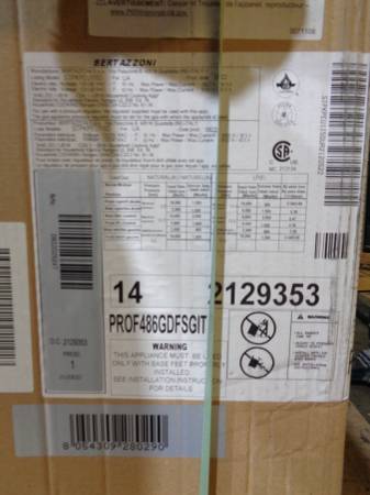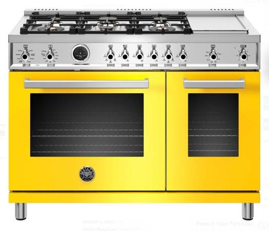 For sale is a new Giallo Yellow Bertazzoni Professional Series PROF486GDFSGIT 48 Inch Freestanding Range. Duel fuel range, gas burners with electric oven. Item is new, still in factory box. Local pick up in Santa Clarita CA 91350. We can load your truck or trailer with our forklift. Please see pics and email with questions or would like to set up a time to see it in person.