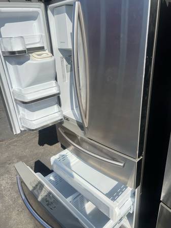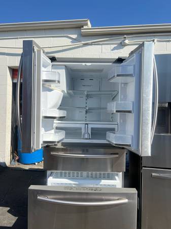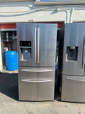 I have these great working french door stainless steel fridges!! All my refrigerators are used / refurbished, they will have normal wear and tear. Some with minor scratches / dents. Other than that all my refrigerators are in working order and come with a 30 day warranty. delivery is available at extra cost