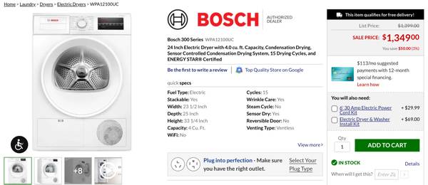 Up for sale brand new in the box Bosch 300 Series WPA12100UC. 24 Inch Electric Dryer with 4.0 cu. ft. Capacity, Condensation Drying, Sensor Controlled Condensation Drying System, 15 Drying Cycles, and ENERGY STAR® Certified. Retail over $1400, Selling for $750 Cash pick up only. Please call or text George at (747)261*11*88 Only if item and price is right for you. As long as posting up still available don’t ask. Emails wouldn’t be answered sorry. For more info check the last photo.