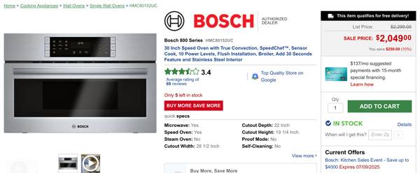 Up for sale brand new in the box Bosch 800 Series HMC80152UC. 30 Inch Speed Oven with True Convection, SpeedChef™, Sensor Cook, 10 Power Levels, Flush Installation, Broiler, Add 30 Seconds Feature and Stainless Steel Interior. Retail over $2200, Selling for $1400 Cash pickup only, please call or text George at (747)261*11*88 Only if this item is right for you. For additional details about this product visit their website. Emails wouldn’t be answered. If you’re reading this ad still available please don’t ask.