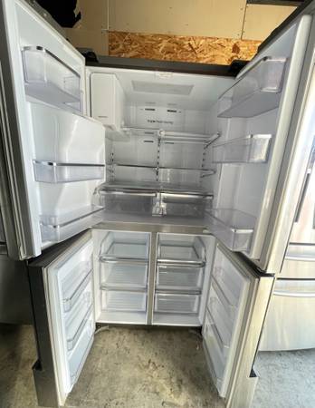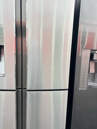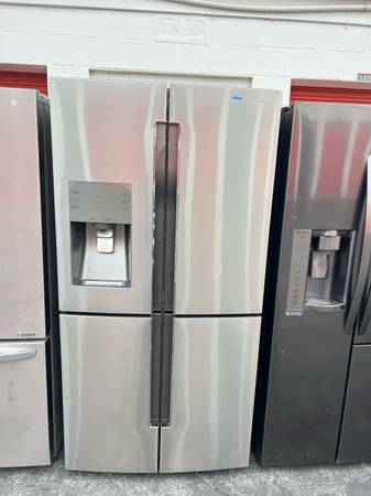 I have this great working french door stainless steel fridge!! All my refrigerators are used / refurbished, they will have normal wear and tear. Some with minor scratches / dents. Other than that all my refrigerators are in working order and come with a 30 day warranty. I’m asking 599 delivery is available at extra cost