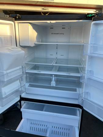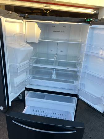 I have this great working french door stainless steel fridge!! All my refrigerators are used / refurbished, they will have normal wear and tear. Some with minor scratches / dents. Other than that all my refrigerators are in working order and come with a 30 day warranty. I’m asking 750 delivery is available at extra cost