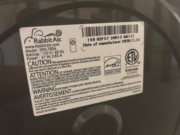 Lightly used Rabbit Air SPA-780A. It was used for 2 years then put in storage. Has the filters. Good condition, works perfectly. These are $600 brand new. $140 or best offer