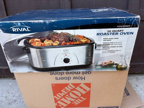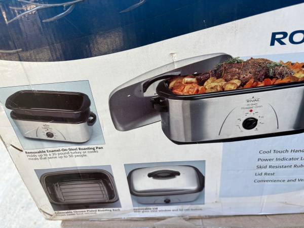 i have a rival 20qt roaster oven that can cook large turkeys perfectly all stainless with stainless top and glass will cook for up to 50 people sealed box unit never taken out with extras this is the nicest you can get look at pictures to see what it can do