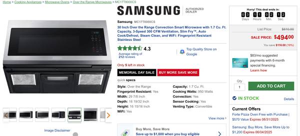 Up for sale brand new in the box Samsung MC17T8000CS. 30 Inch Over the Range Convection Smart Microwave with 1.7 Cu. Ft. Capacity, 3-Speed 300 CFM Ventilation, Slim Fry™, Auto Cook/Defrost, Steam Clean, and WiFi: Fingerprint Resistant Stainless Steel. Retail over $600, Selling for $425 Cash pick up only. Please call or text George at (213)419*32*00 Only if item and price is right for you. If you looking at the posting still available please don’t ask. For more specs look at last photo or visit their website. Emails wouldn’t be answered sorry.