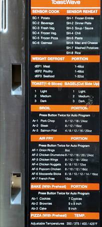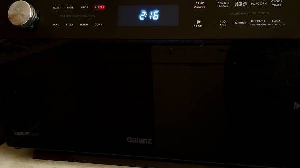 Almost new Convection air fryer toaster oven with variable inverter power SENSING microwave, top browner/broiler full, turntable, and magic twist knob for multiple functions.