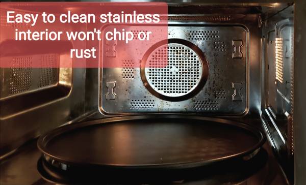 Stainless steel interior is sanitary, won't rust or chip, and wipes clean.