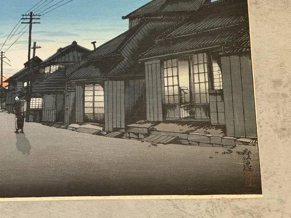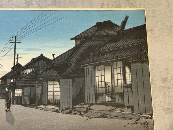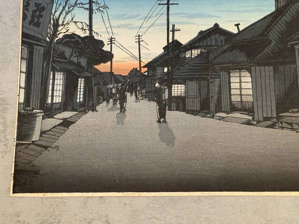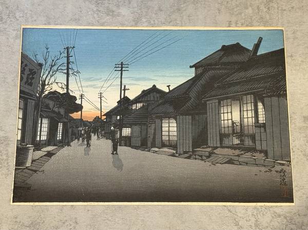 Overview: Up for sale is this stunning woodblock print, "Twilight at Imamiya Street" by Japanese print artist, Ishiwata Koitsu. This print was initially published in 1932. This appears to be a somewhat later edition (likely 1950s). An absolute classic and one of the most beautiful Japanese prints ever made. Very difficult to find. Print is unframed.