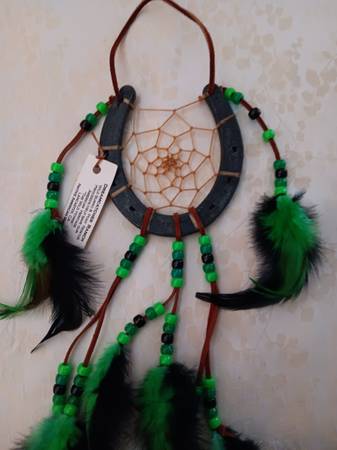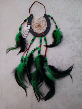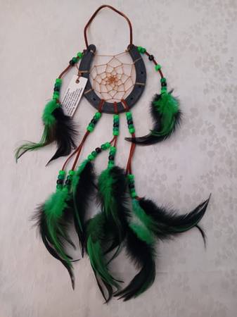 Brand New Native American Made Dream Catcher. Beads and feathers are black and green. 17-20" It's quite striking!!!