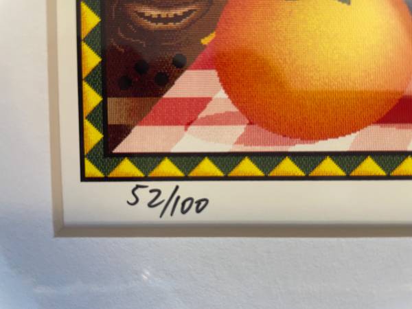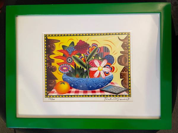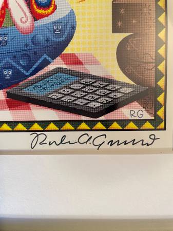 Signed and numbered limited edition colorful computer graphic print from whimsical artist Rodney Alan Greenblat. The print is in excellent condition protected by the plexiglass in original frame. The frame has some light wear. See photos for a more accurate description. Originally sold by Martin Lawrence Limited Editions.