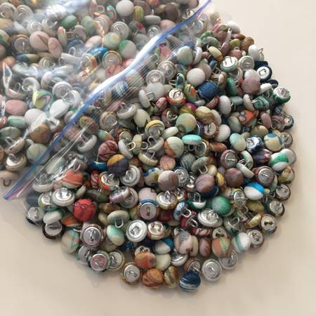 Unique and High Quality Fabric Covered Buttons / Aluminum Shank Covered Buttons in a colorful assortment of red, green, burgundy, blue, brown, black, white, cream and multi pastel colors/fabrics, all can be seen in the attached photos/images. I have a large quantity of each color/fabric.
