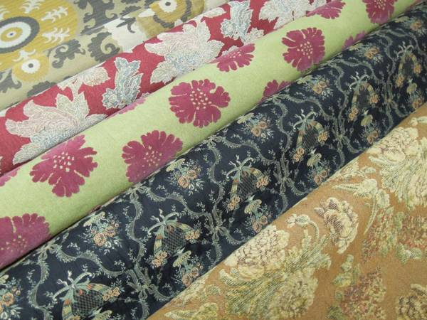 Beautiful, Unique and Exclusive Designer Fabrics, Tapestry / Upholstery / Washed Chenille's, in assorted colors and patterns.