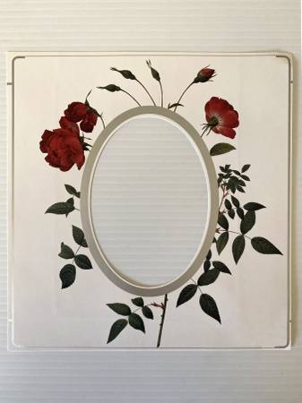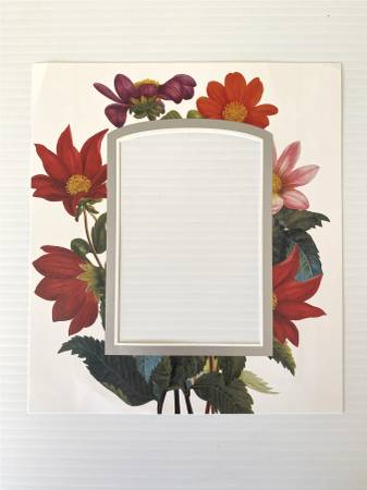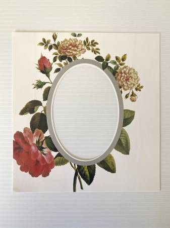 Two-Sided Floral Frame Inserts / Photo Mats - Each side shows different flowers and colors, so you have 2 options in each mat, so you can switch off as needed. I have 10 of these available - 5 with open oval centers, and 5 with arched-top rectangle center openings for photos, each with different beautiful florals printed in vibrant and diverse colors.
