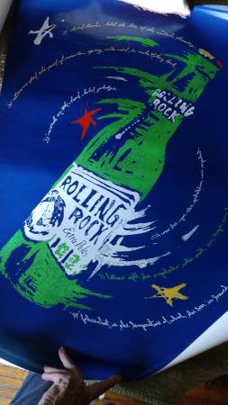 Three Rolling Rock beer prints. Each 22 1/2" by 34 1/2". Good condition. $18 each or $35 for all three.
